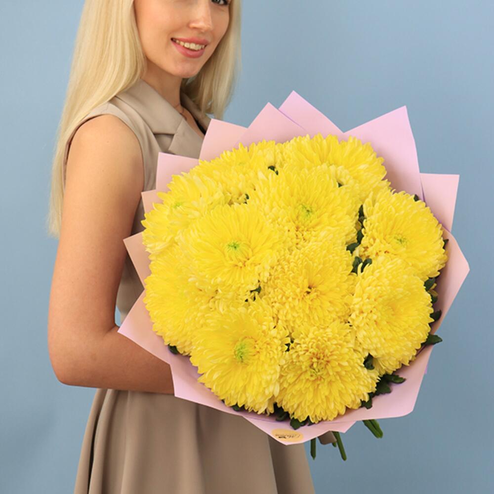 Букет из 11 одноголовых жёлтых хризантем